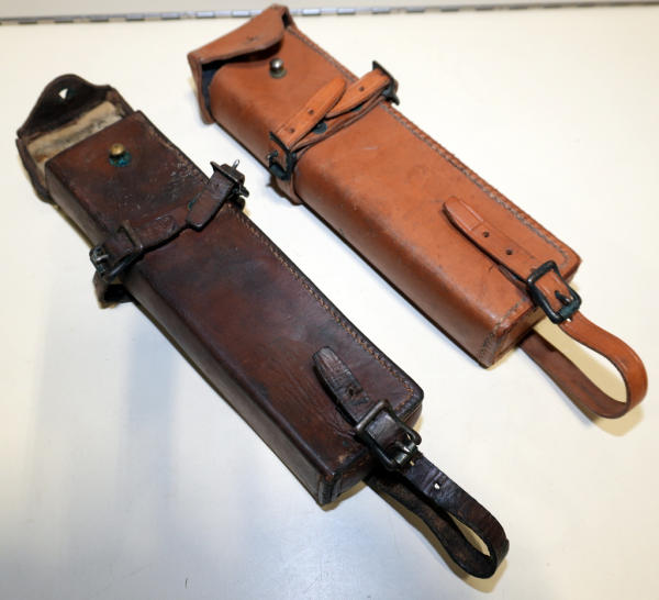 one is marked Graton & Knight on inside; other has some more wear; believe these are scope cases; sell for one money