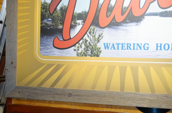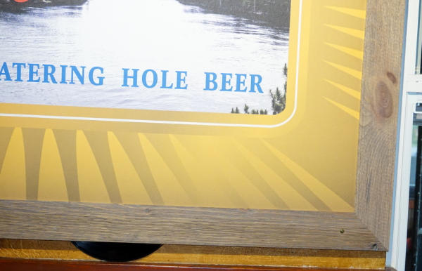 52"X66", custom printed on wood with wood frame, super sharp, has a "Hamm's" beer design to thit, nice piece