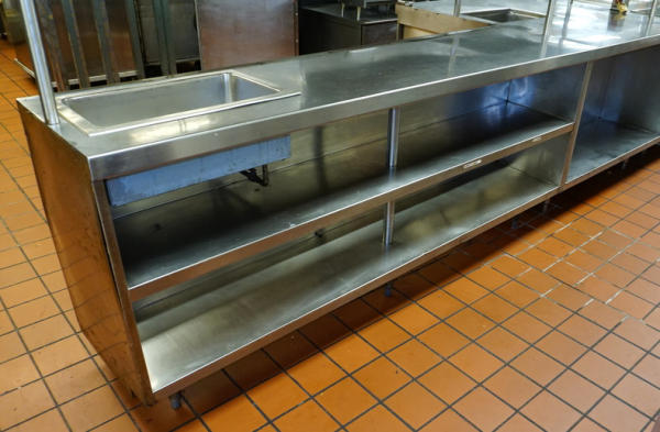 these sections are all welded together; so it sells are for one piece, buyer is responsible for dismantling and taking apart themselves; check photos to see all that is included; measures approx. 23' long x 58" wide (at the widest part) x 6' Tall; includes 3 Hatco Food Warmers; kitchen; ; Large Item Load Out