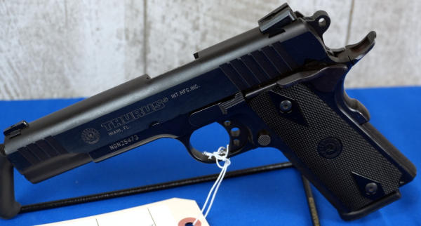 5" Stainless Barrel; plastic checkered grips; night sights; factory hard case; 2-magazines; nice used condition; Brazil; SN#NGN25473; A-246