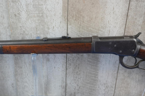 24" Rnd BBL; action catches; full length receiver tube; looks to have British proof marks; metal crescent butt plate; No Transfer needed; USA; SN#142286; mfg.1896