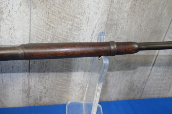 missed one when cataloging the Winchesters! 20" Rnd. BBL; 2/3rds length receiver tube; action is a bit clunky; plastic butt plate has some chips; dark brown patina; piece of wood missing behind receiver by top tang; USA: SN#535805