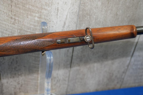 24" BBL; smooth action; Marbles rear tang peep sight; very nice wood stock w/checkering; case hardened lever and nice bluing; brass block rear sight; circle front target sight; nice gun; USA: SN#341509