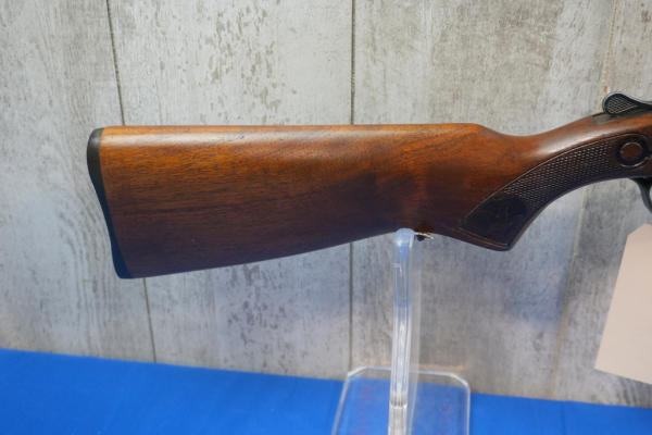 26" BBL; bluing is thin; easy break action fancy engraved wood stock; plastic butt plate; FC; Canada; SN#4415C