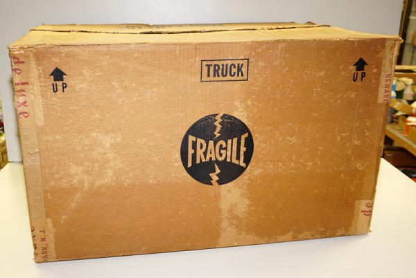 This is a remarkable and impressive set, includes a mint original Marx US Army Truck with the searchlight trailer, Howitzer Cannon, all the shells, plus all the green army men! Super colorful display, the top panel was shipped folded down, so it broke the cardboard with time, but still the color and condition is exceptional, all even has the original brown shipping box, this would be a featured piece in any antique toy collection!
