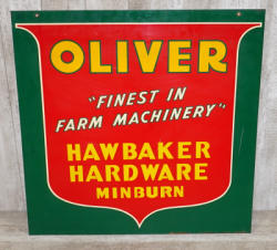 36"x29", lightweight plastic with masonite back and aluminum frame, some discoloration, but no major damage or cracks, an Oliver sign we have never seen or sold before, can't be many of these that survived due to the plastic construction