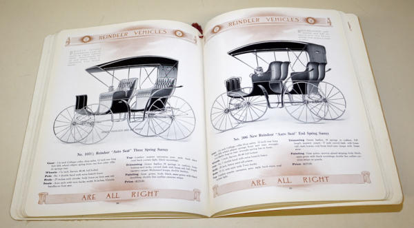 116 pages, very clean and nice, embossed cover, some minor wear, but overall very nice. Full of different buggies, first page shows the automobiles, fantastic piece of JD we have never offered before