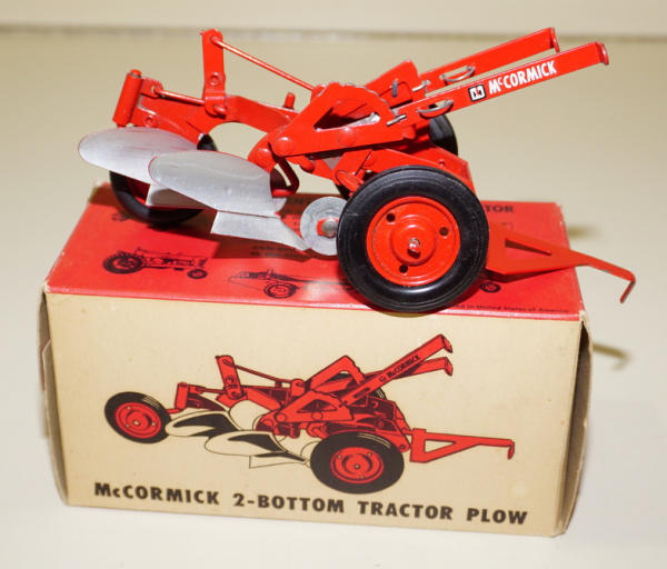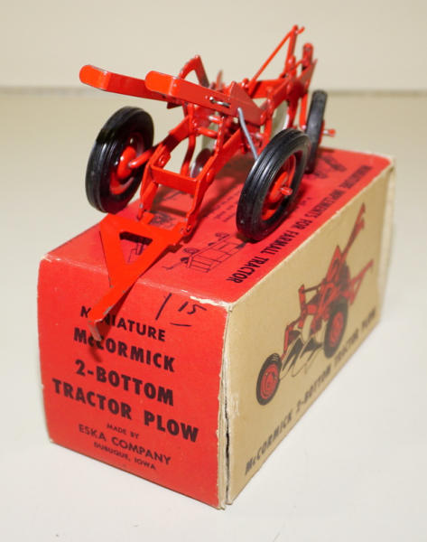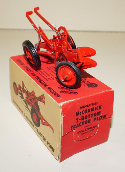 Mint toy, has tin tailwheel; box is complete and nice, a little edge wear and discoloration from age, rates 8.5 condition