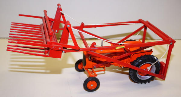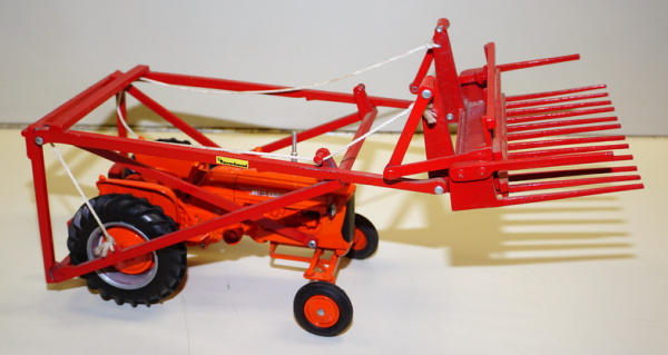 older SpecCast Tractor, Scale Models Farmhand loader added, some paint chips on the loader, but looks good