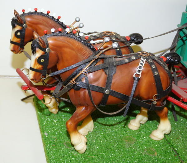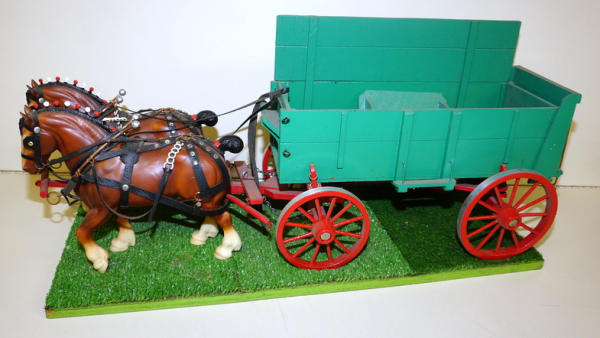 Breyer horses, wood wagon, all mounted to a board to display, could use a good cleaning; no shipping, pickup only