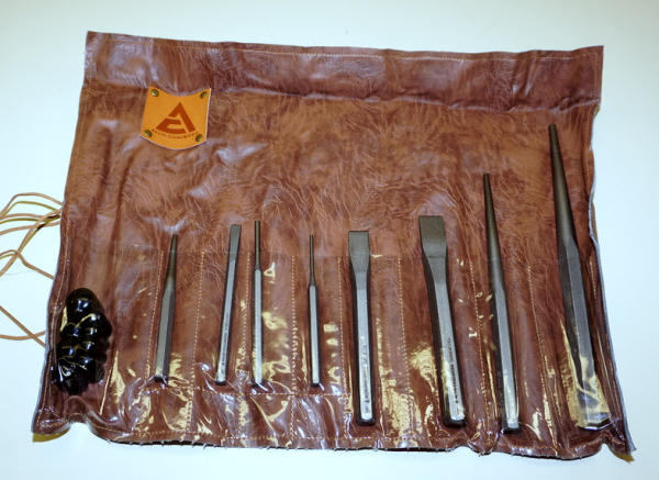 modern made, all tools are stamped with the AC logo, leather roll, never used, neat set we haven't sold before