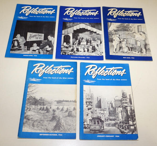 3 1954, 2 1955; Reflections were small magazines that were for Hamm's employees and Distributors, some great images inside including displays, delivery trucks and promotions; lots of history too! normal wear, all to go