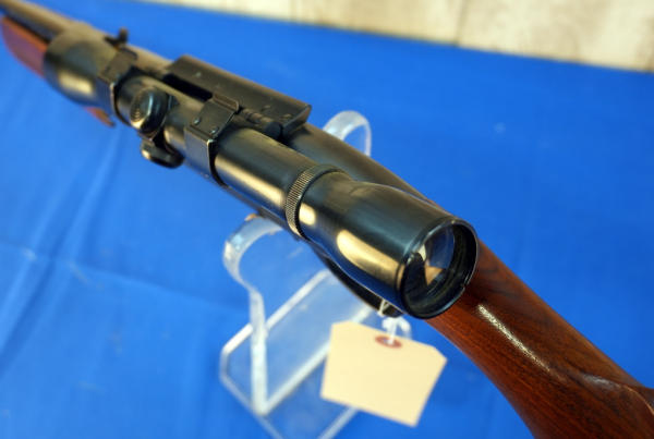 22" BBL w/sights; smooth action; very nice wood; rubber recoil pad; removable magazine; Weaver K4 Scope mounted on flip-over rail; USA; SN#12028; A-226