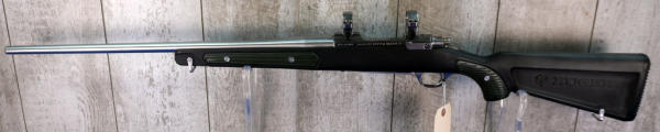 22" Stainless Barrel; smooth action; scope rings; black synthetic paddle/skeleton stock w/green panel inserts; overall nice and clean; USA; SN#780-25948; A-286