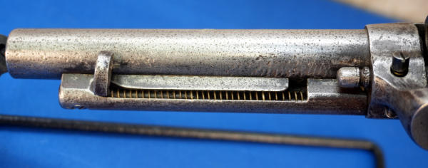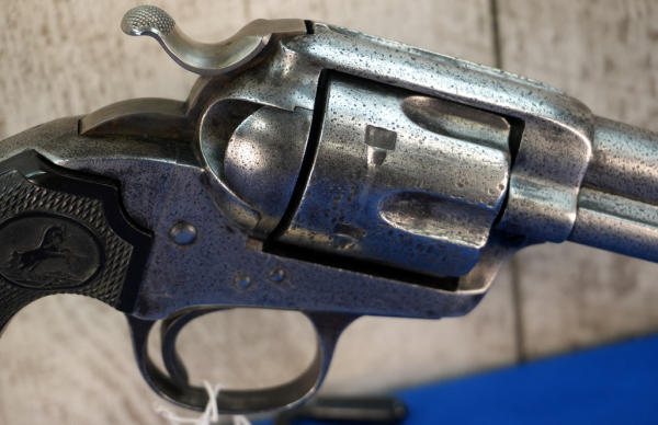 5.5" BBL; bluing is gone; original factory plastic checkered grips; low profile hammer; 6-shot fixed cylinder; has some marks, dings & minor pitting on barrel and cylinder from use; USA; SN#233223; A-255