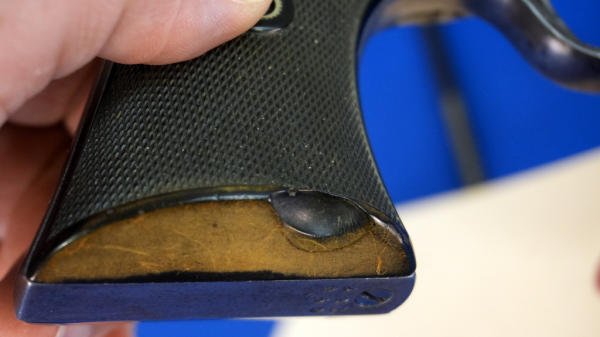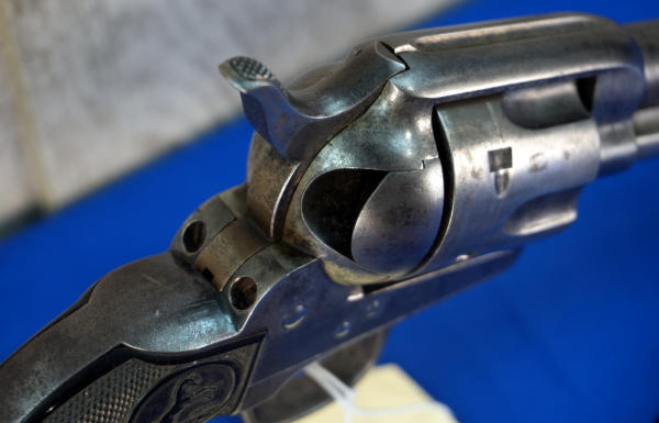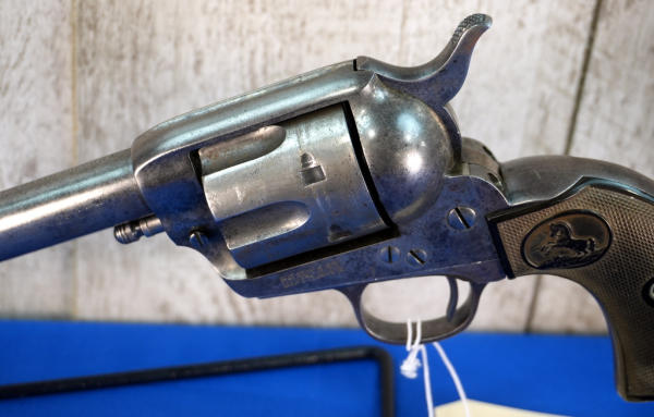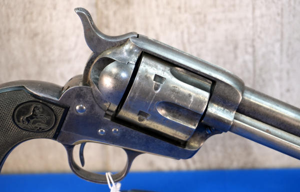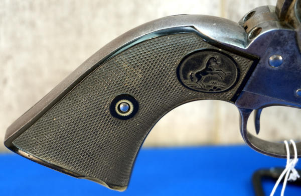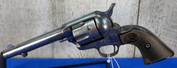 5.5" BBL; bluing is thin; original black plastic checkered grips, does have a chunk missing from the bottom of the right grip; 6-shot fixed cylinder; includes a Doskocil hard case; USA; SN#291360; A-255