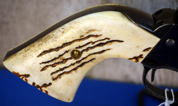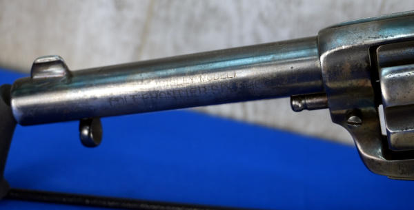 5" BBL; bluing is ok; imitation stag style grips; 6-shot fixed cylinder; USA; SN#246875; A-255