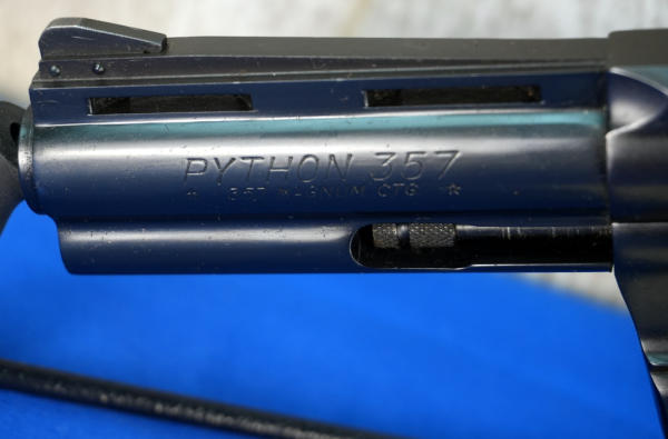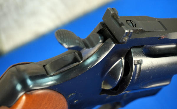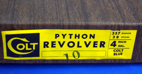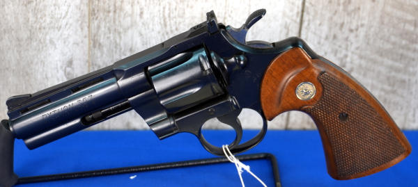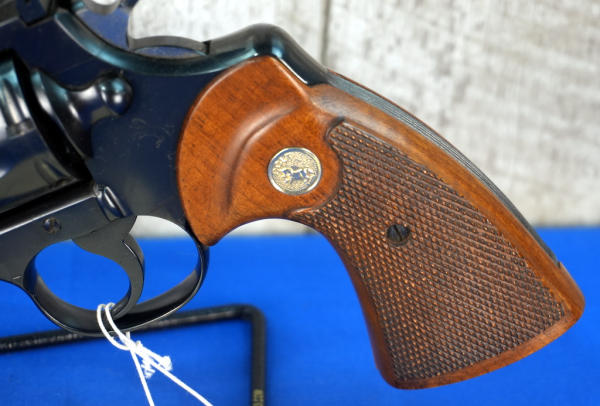 4" VR-BBL; wood checkered grips; 6-shot swing out cylinder; this is a 1-owner gun and said his father had it by his bed most of his life so it's only been fired a handful of times; original factory box; 1970's production; USA: SN#E9470; A-265