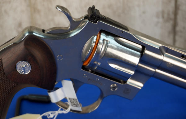 3" VR-Stainless Barrel; red ramp front sight; wood checkered grips; 6-shot swing out cylinder; mint & unfired w/factory hard case; USA; SN#PY251793; A-295