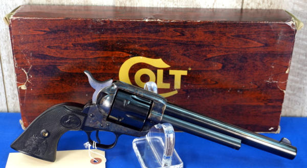 7.5" BBL; plastic checkered grips; case hardened receiver; 6-shot fixed cylinder; original factory box; looks mint & unfired; USA; SN#SA36384; A-280