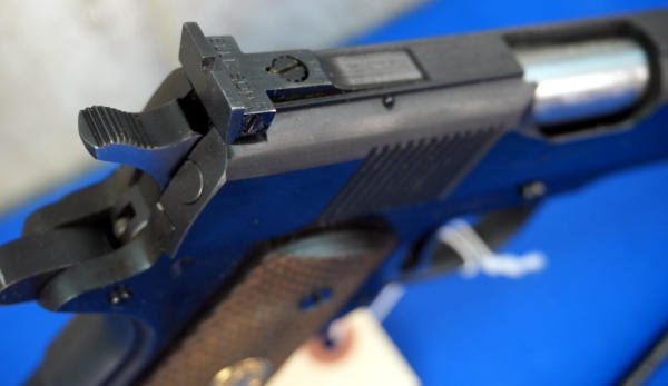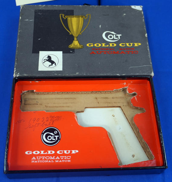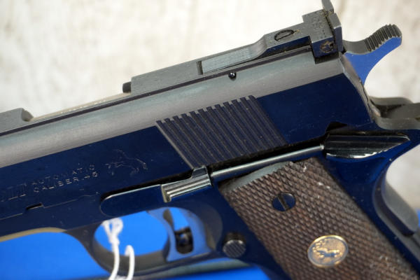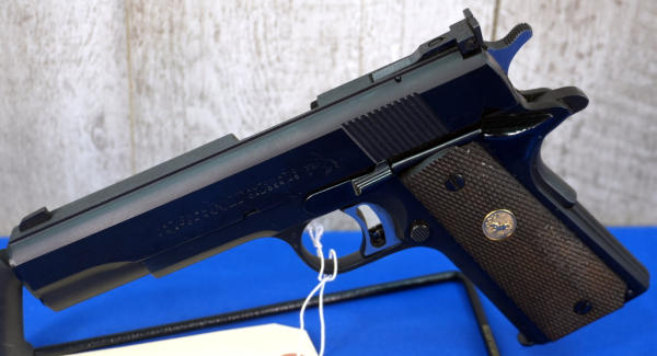 5" BBL; factory wood checkered grips; looks mint & unfired w/original box; correct Colt magazine; very nice 1911; USA; SN#19022-NM; A-280