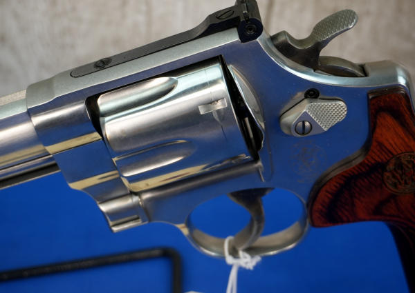 6.5" Stainless Barrel; wood grips; 6-shot swing out cylinder; used but very clean; factory hard case; red ramp front sight w/rear white outline; USA: SN#DDC5544; A-282