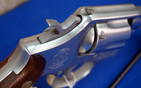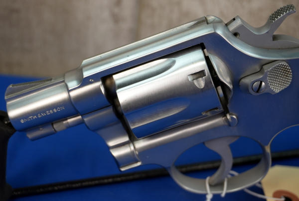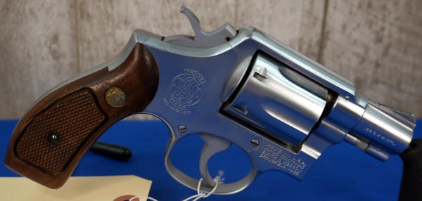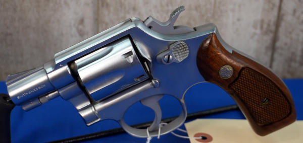 2" Stainless Barrel; 6-shot swing out cylinder; used but very clean; wood checkered grips do have a ding on both sides; come w/a factory hard case but label does not match the gun; USA: SN#D948746; A-302