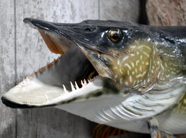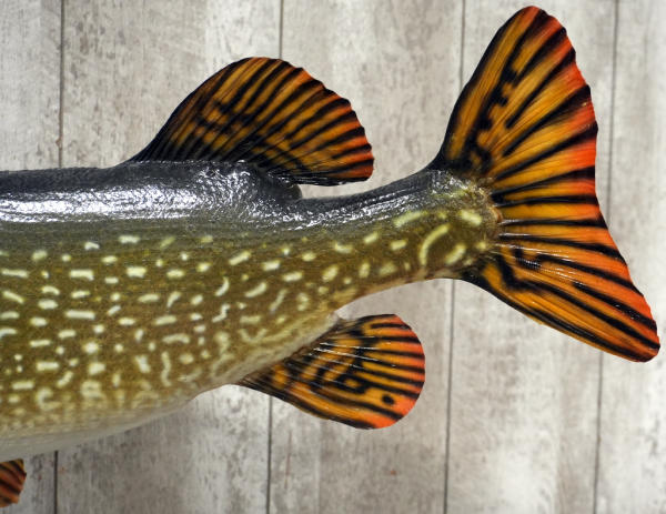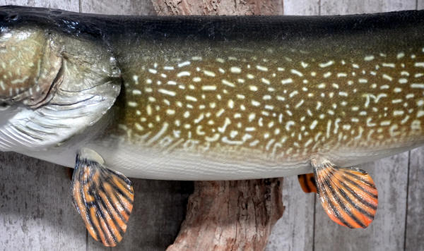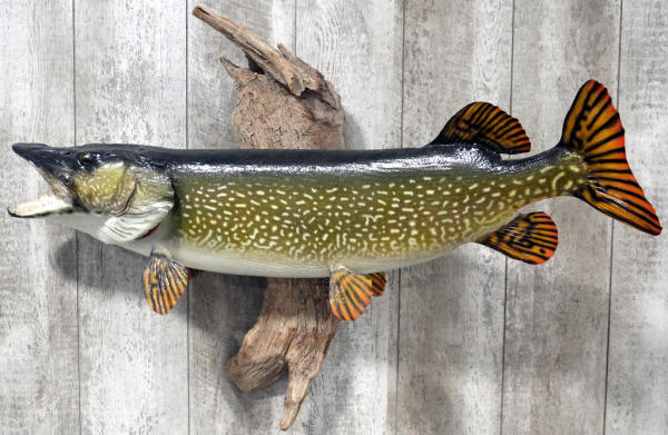 laid flat I would guess around 39" long fish; mounted to a piece drift wood; NO SHIPPING, local pickup only