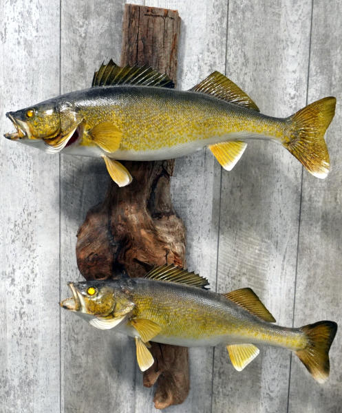 one is alittle bigger than 24" and other about 21"; mounted to a piece of drift wood; very nicely mount; NO SHIPPING, local pickup only