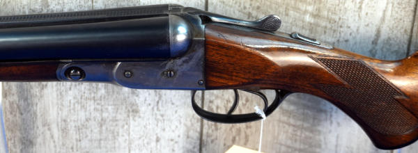 28" BBLs w/auto ejectors; overall very nice wood for it's age; easy break action; rubber recoil pad; two triggers; receiver looks to have been buffed to a stainless look; bluing on barrels is very nice; Vulcan Steel; Left-MC, Right-IC; USA: SN#237343; A-315
