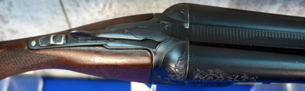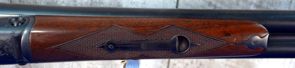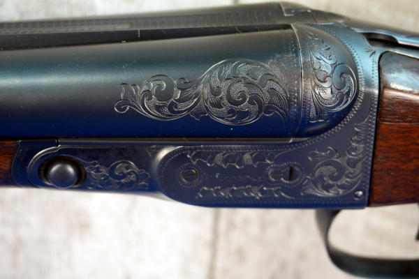 30" BBLs; easy break action; two triggers; very nice wood w/great color & checkering; blued receiver; factory scroll engraving on receiver and portion of the barrel; plastic butt plate w/embossed dog; Vulcan Steel; Left-FC, Right-IM; USA; SN#118020; A-317