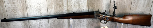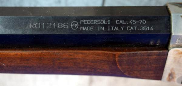 30" Oct. BBL; appears unfired; no box; metal butt plate; case hardened receiver; smooth rolling action; rear tang flip up target sight; has a couple small dings on the wood stock, probably from being handled or in the safe; Italy; SN#R012186; A-249