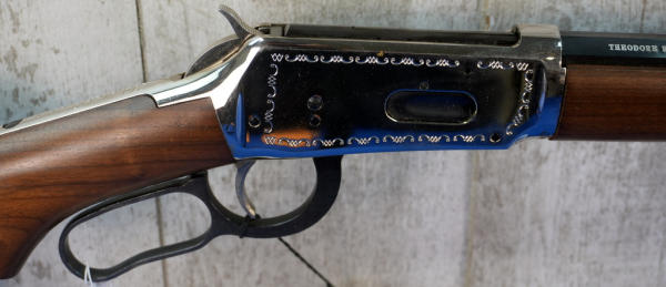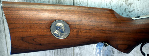 26" Oct. BBL; has original box but only a portion of the original graphic sleeve; gun looks mint & unfired; nickel finish receiver, forearm cap, hammer, butt plate; medallion in stock; USA; SN#TR38976; A-239