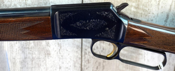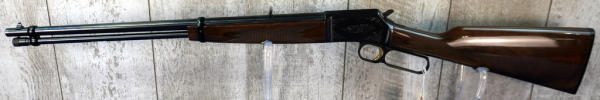 20" BBL; full length receiver tube; gold trigger; mint & unfired; plastic butt plate; factory scroll engraving on receiver; nice high gloss wood stock w/checkering; factory box; Japan; SN#01378RP226; A-280