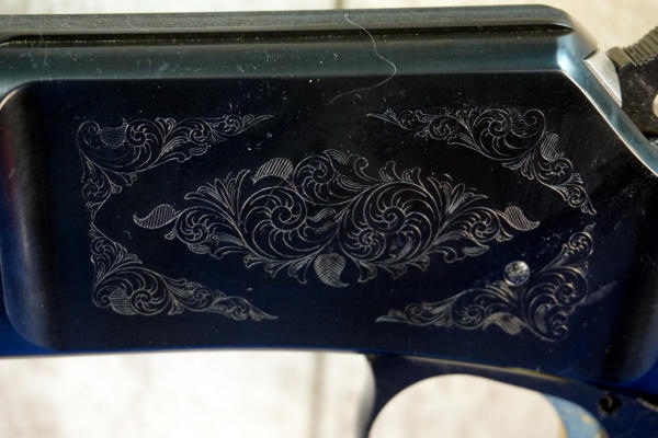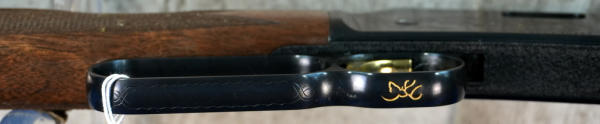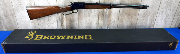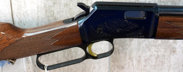 20" BBL; full length receiver tube; gold trigger; mint & unfired; plastic butt plate; factory scroll engraving on receiver; high gloss wood stock w/checkering; factory box; Japan; SN#01018ZN242; A-280