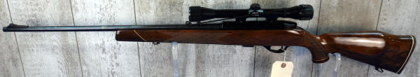 24" BBL; removable magazine; beautiful high gloss finish stock; rubber butt pad; Weatherby XXII 4x50 scope; bright bluing; sharp looking gun!; Japan; SN#JC13104; A-280