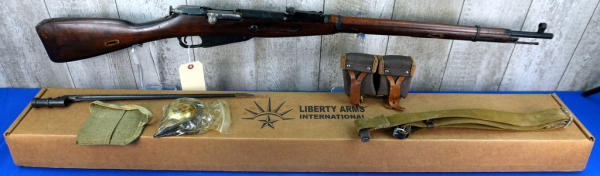 30" BBL; smooth action; wood stock show better than normal wood for it's age and use; come with a Liberty Arms box and includes ammo pouches, oil tin; sling and spike bayonet!; Russia; SN#B4749; A-306