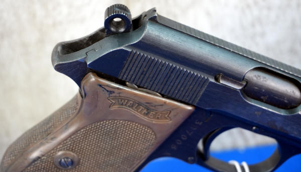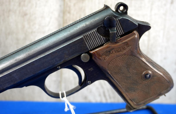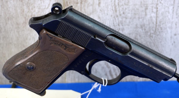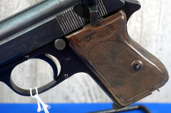 3.25" BBL; bakelite checkered grips; 2-magazines; period correct leather holster has some wear; bluing has some spotting; WaA marked; Germany; SN#387006K; A-285