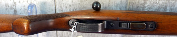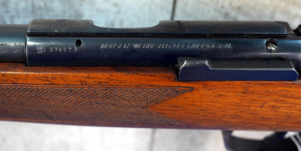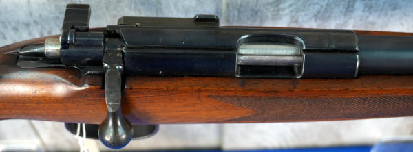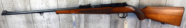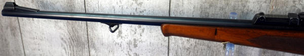 24" BBL; hooded front sight; smooth action; very nice wood checkered stock; correct Mauser plastic butt plate; comes with an original magazine which is very hard to find!; very nice looking rifle; Germany; SN#216027; A-315