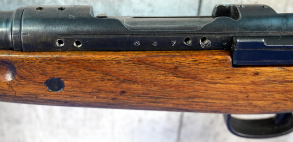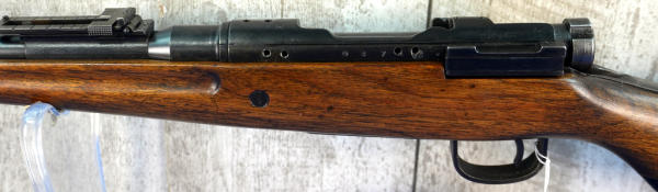 26" BBL; sporterized; smooth action; missing aircraft wings in original sight; excellent bore; bolt handle turned down for scope; drilled & tapped; ground mum; metal butt plate; Japan; SN#470; A-264