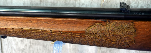 22" BBL; smooth action; mint & unfired; no box; highly engraved wood stock w/farmstead scene; removable magazine; USA; SN#AFR-01375; A-287