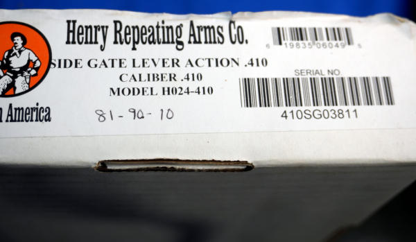 20" Rnd. BBL; mint & unfired w/factory box; fancy checkered wood stock; 2.5"; CC; USA; SN#410SG03811; A-255