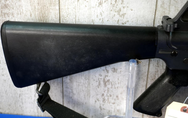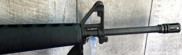 20" BBL w/1.5" flash hider; triangular handguard; fixed synthetic stock; carry hand w/picatinny rail; woven sling; used but very clean; USA; SN#SP51109; A-255