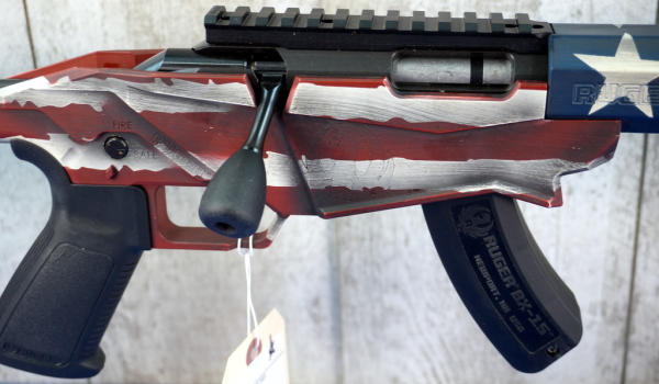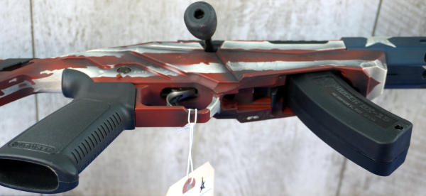 18" BBL w/Threaded muzzle; smooth action; picatinny rail; adjustable stock; one magazine; factory box has some wear; mint & unfired; has red/white/blue USA flag Cerakote graphics; USA; SN#841-09765; A-255