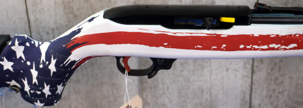 18.5" BBL w/Hy-vis front sight and threaded muzzle; mint & unfired w/factory box; synthetic stock w/USA flag graphics; removable magazine; includes the special edition sign & button; USA; SN#RCS7-51736; A-295