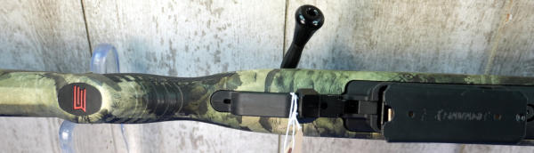 20" BBL w/threaded muzzle; straight pull bolt action; removable steel magazine; Mossy Oak synthetic camo stock; picatinny rail; rubber recoil pad; new condition; no box; USA; SN#P339215; A-300