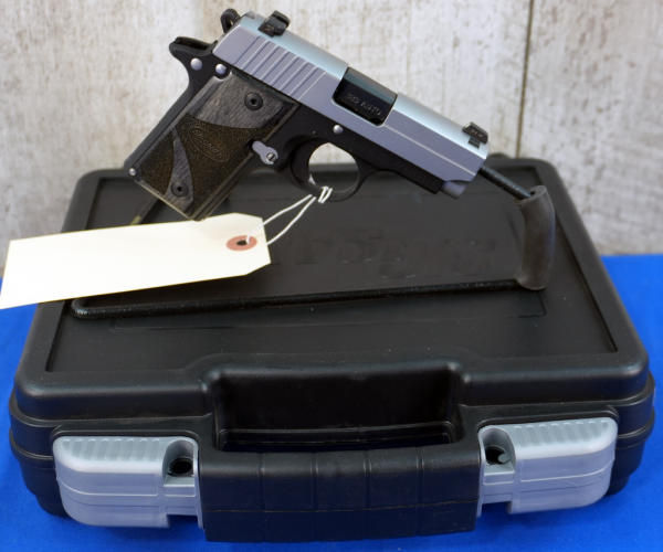 2.75" BBL; Stainless Slide w/black steel frame; laminate wood grain grips; holster & factory hard case; night sights; USA; SN#27B283802; A-302