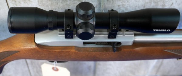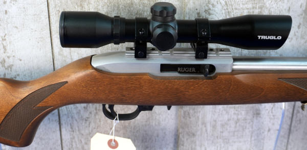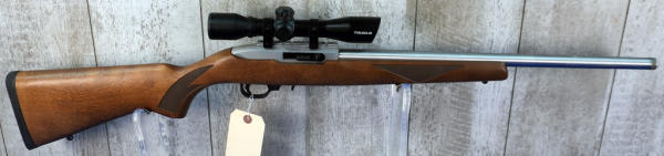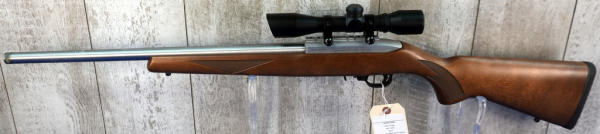 20" Stainless Barrel w/Threaded Muzzle; wood stock; Truglo scope; removable magazine; like new; USA: Sn#0020-57494; A-287