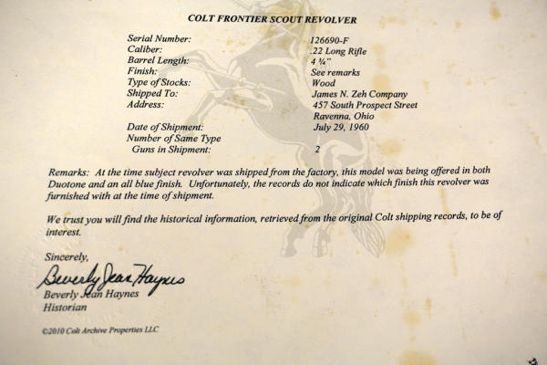 4.75" BBL; beautiful finish and like new condition; comes with an original factory box; rare to find with original smooth wood grips; includes a Colt letter with it's authenticity, shipped in 1960!; 6-shot fixed cylinder; great example of an iconic revolver! USA; SN#126690F; A-280