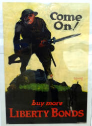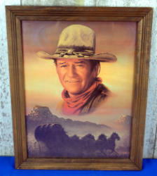 has some warping and minor wear; overall nice color w/cool graphic of three 22 rifles leaned on the fence; 28"x18"